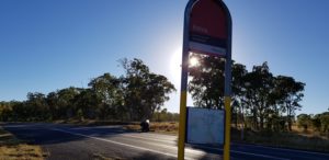 A local gives me the heads up that the rain is now in front of us heading north east so we should be good for the rest of the journey. Between Moree & Mungindi Johnny & I encounter a few roos and a turtle.Scheduled stop at Mungindi and our friends from Moree have caught up with us.