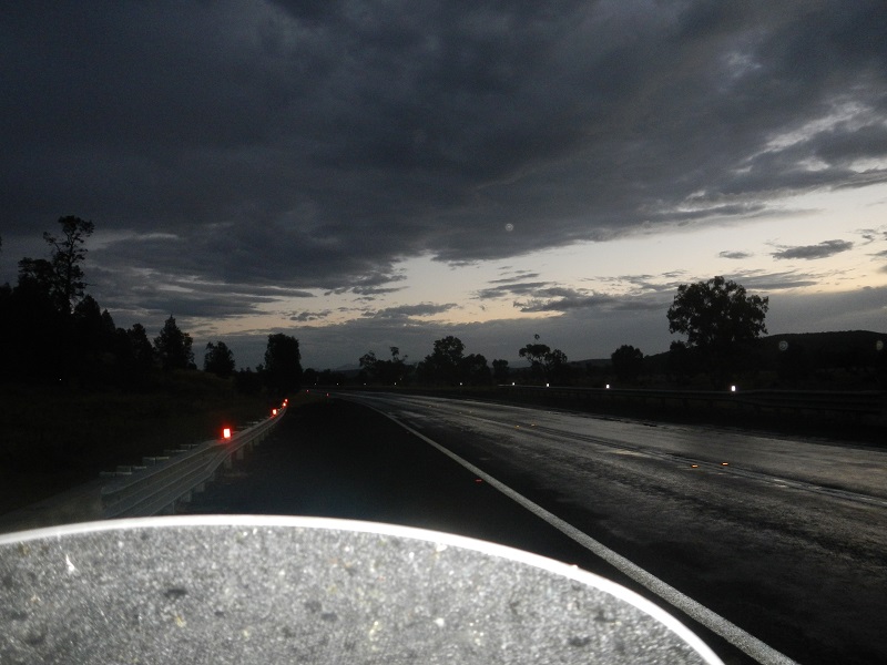 Heading into Coonabarabran I’m now loosing the light of day and Dudleys spotties are again getting a workout before coasting through Mullaley and into Gunnedah just after 7:30pm.