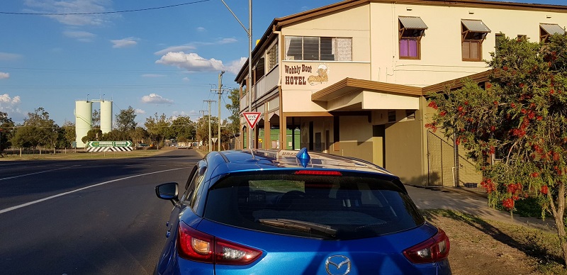 It’s mid-afternoon, bewitching time for wildlife, so it’s with caution and eyes wide that I travelling this section. There’s a lovely new Shell on the way into Boggabilla and the old Wobbly Boot Hotel is still there…although I don’t think it is open anymore as all the windows seemed to be boarded up. Still I had to stop for a pic.