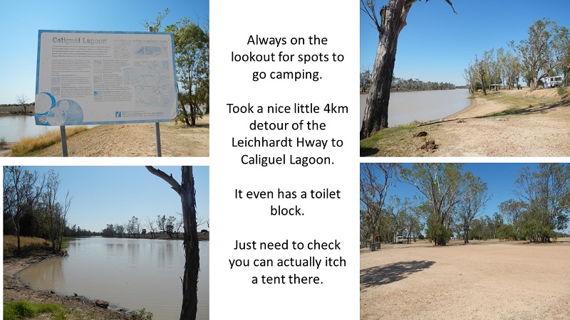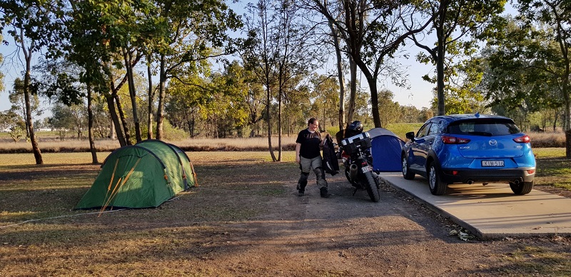 Almost to Goondiwindi now and looking forward to setting up and having a feed, not before stopping for wine and cheese. Arrive at Goondiwindi Holiday Park ~5pm, 3 hours earlier than I had advised Malcolm. He was surprised and disappointed that I wasn’t on the bike (as I had originally said when I made the booking). Gave me the key and pointed me in the right direction for our campsite. Nestled into the back of the park close enough to a camp kitchen and one of the amenities blocks. Set up camp Kimmie and when I emerged from the tent after making my bed, darkness had completely fallen. I thought about setting up Felicity’s tent but not having done it before thought it probably best just to assist her when she arrives.
