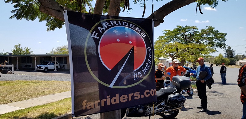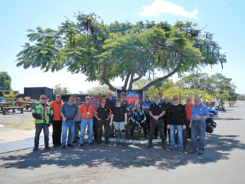 Still with a timeline to meet as you don’t want to be late…even if you are in the car, I push on to Wandoan. It’s a tiny town that at first I thought consisted of just the service road but there is a but more…not much but more. There is a supermarket, the pub of course where we had lunch, laundromat and a few others including a community hall/information centre. Arrived at the Wandoan Pub and a few riders had already pulled up including Felicity under the shade of the few trees available. Thought I’d assist and conduct check-in for Ghosty & Clint (since I couldn’t qualify anyway) before taking the group photo and a few others.