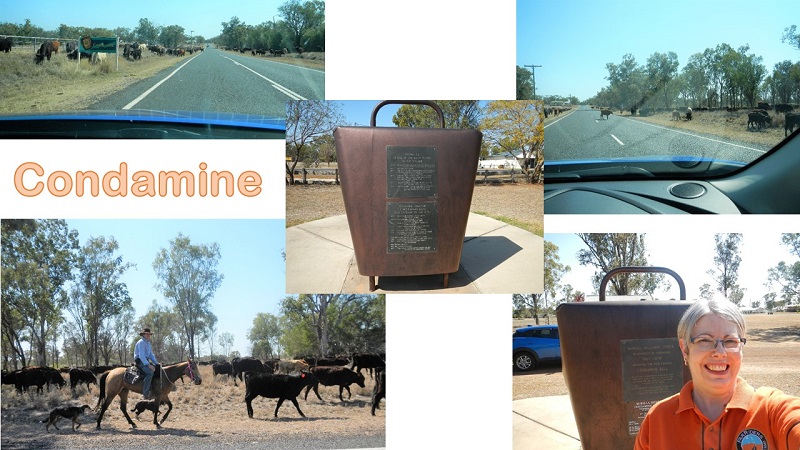 Farewelled the rest of the crew and we headed back to Goondiwindi for another night at Camp Girl Power. Ice-cream at Condamine and finally stopped for a pic of the Condamine Bell. On the way back one of the cattle farmers were grazing the cattle on the main roadside…..mustering on horseback which in itself was a lovely sight to see and not one I see often.
