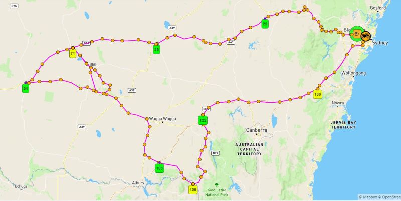 Full trip track for the weekend – 2010 km for the weekend