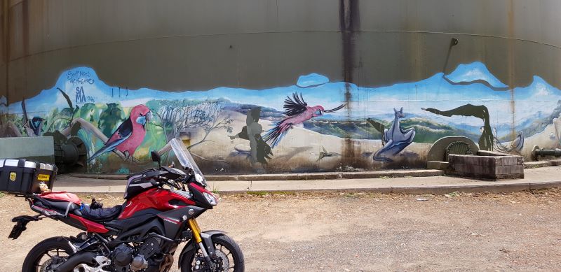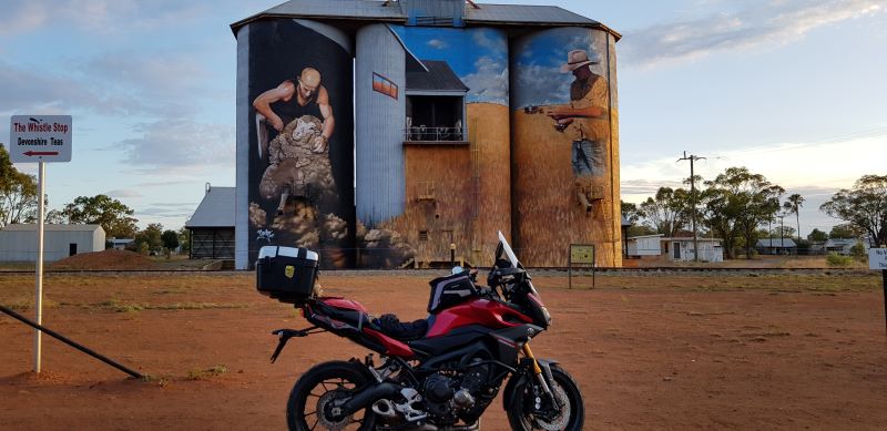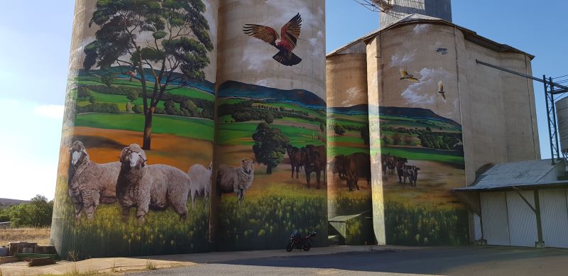 Back out of the highway and through Bathurst and into Blayney Caltex for fuel. The temperature is starting to climb and again so is the humidity. Off again and through Cowra with a beeline to Grenfell to locate the 5th Dot. Really glad I missed this one last time I was out this way as it gave me an excuse to come back (not that anyone really needs an excuse…right). The Grenfell Silos is located in the back of town (away from the main road) so unless you know it’s there, you’d just ride through. I tell you though, it’s not one you want to miss……again the attention to detail is amazing.