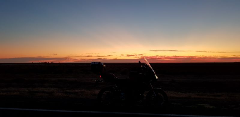 Grumbled when the alarm went off this morning (Sat 15th Feb), need more sleep but up, packed and off. I LOVE early morning riding and after a nice down pouring last night there was a sweet smell in the air. Watching the sun rise, well really has me lost for words. Over my years of riding I have had the pleasure of experiencing this quite extraordinary moment of the day and this morning was no exception. This was taken between Goolgowi and Hay. Good morning Australia!!