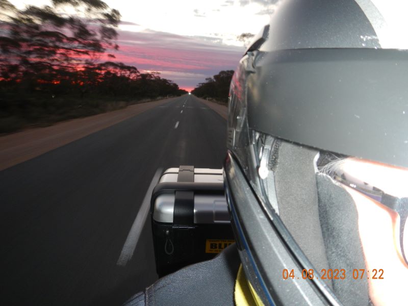 Woke early, porridge for breaky and just got going, left Renmark about 6am in a clear and warm morning, lights blazing. Still required the heated suit though.