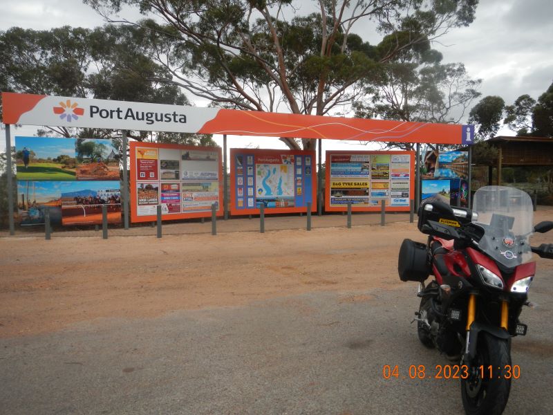 Had moments of clear sky and pulled into Kimba – Halfway Across Australia for a pic of the Silo Art, lunch at the Big Gallah before grabbing some fuel for the next leg