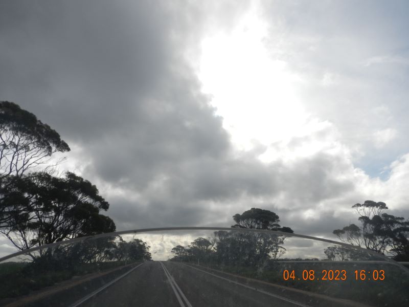Between storms on the Eyre Highway and a reminder that I haven’t got that far to go today…only 399 kms