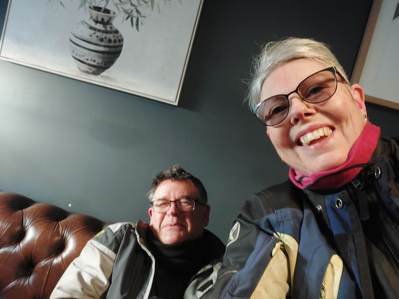 Wrap up for the day, necks sore, ears have sore points that I didn’t know existed, heated gear is a blessing and the new Camelbak is a pain in the arse – some MacGyvering is needed on this to get it to work for me. It’s lovely to have Karl along and he also has sore ears, neck & butt and a few more pains since he hasn’t ridden for ages.