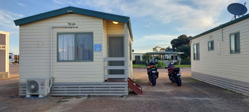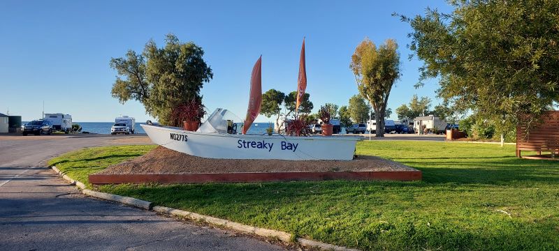 Lunch was unexciting, fuel is getting more expensive and the windy just isn’t going away. Through Wudinna and just out of Poochera we take a “left turn Clyde” to head towards Streaky Bay our stop for the night. Fuel and off to the Discovery Park Foreshore Streaky Bay to our cabin by the bay.