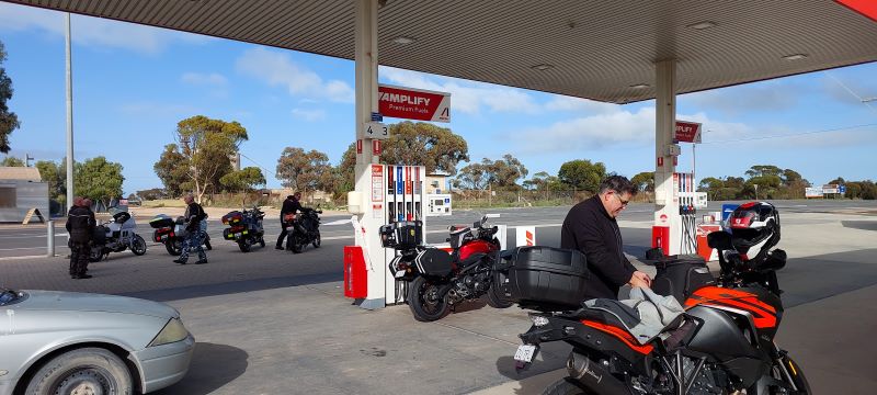 184km to Nullarbor Roadhouse for fuel and Karl’s breaky, coffee for me and more friends pull in after us. Joined by Chicky, Quinny, Macca, Bill, Trevor & Possum where we enjoy some laughs before it’s time to head off again into the rain where we no doubt will meet up with these guys again. Penong for fuel & yep the boys pull in after us. Karl found an old FarRider cap which someone left behind, so when we get to Wudinna tonight I find out who owns it and arrange for it’s return.
