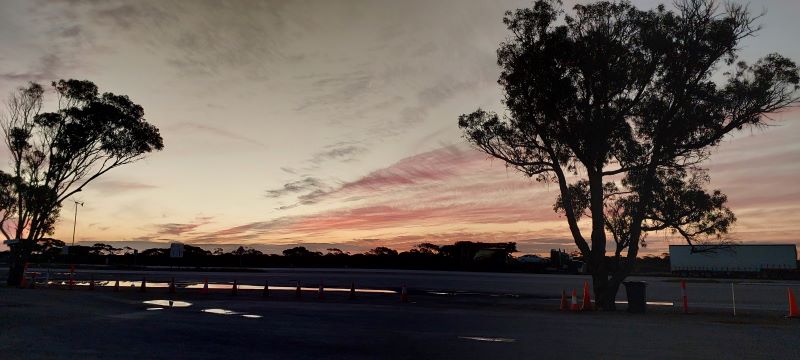 It poured down last night and this morning everything is wet and the fog is heavy & a bit chilly. Karl led us out and it’s slow going at 80kph. Again, the cloud & fog hid the sun so we weren’t blinded by the sun however we were blinded by the fog and so was everyone else. Caravaners travelling slow & slower with overtaking made difficult due to poor visibility. Eventually we passed them and rose out of the fog just west of Kimba and had beautiful fresh mornings run into Port Augusta.