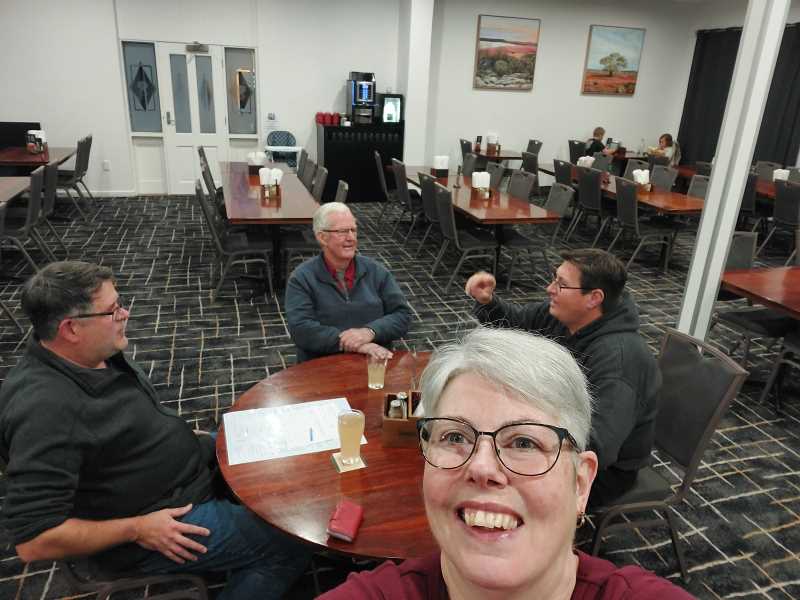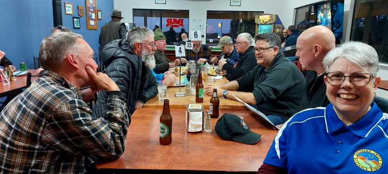 Courtesy bus to the pub…bonus and there are heaps of other riders there too, some old friends of mine all headed for the same destination Border Village. Unusual for me to be chatty..LOL but it’s been a whole year since I’ve seen these guys. Introduce Karl – see he “does” exist and we tuck unto our dinner.