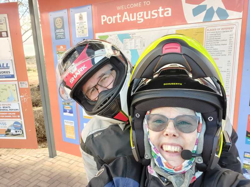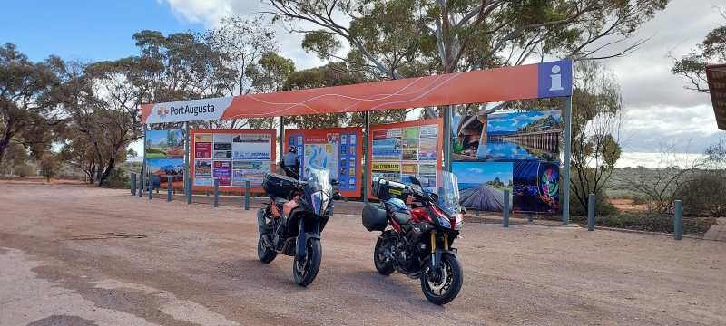 Good morning Streaky Bay!! Overcast skies but thought we would be ok but I was wrong and we had some rain most of the way from Smoky Bay to Ceduna. Not enough to get you real wet but enough to make you a little cautious and hoping it doesn’t get any heavier. Pop out onto the A1 just out of Ceduna then into the Highway One OTR for Karl’s breaky and coffee. We are both still having issues with our ears getting so sore in the helmet. Karl seems to think it’s his ear moulds, I seem to think it’s the earphones and pressure from my balaclava. A few more adjustments and we’ll see how we go…..gotta get it right eventually.