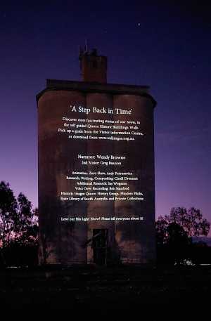 There’s even a “Superman” phone box in town…..if I wait long enough maybe “Karl Kent” will show up. The Transcontinental Hotel for dinner where we had lovely local lamb before going up to watch the Silo Art Light Show. It’s cold and the show goes for 3hrs but we could only do an 1hr before heading back to the warmth of our room.