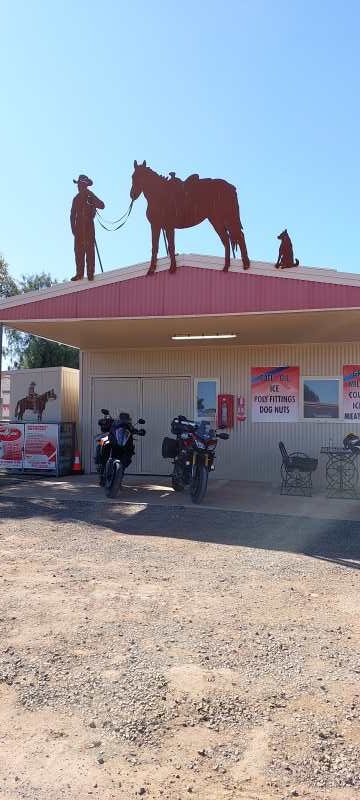 Heading eastward into the sun, heading to Wilcannia for fuel. Once again along this stretch of road there are 1000’s of goats and mobs of long-legged feather dusters (emu) and the odd roo. Wilcannia is not somewhere I would stay but for fuel it was a must today. It was fairly busy and some interesting customers inside which I’m not sure created amusement or worry. Anyway, we are out and onto a stretch of road I’ve not done before, Cobb Highway from Wilcannia to Ivanhoe. This section of road was previously “dirt”, so I am pleased to confirm it is now ALL SEALED. Lunch in Ivanhoe, not one of my best planning options but necessary for fuel as the roadhouse doesn’t really do much in the way of food so it was a pie for me and sausage roll for Karl.