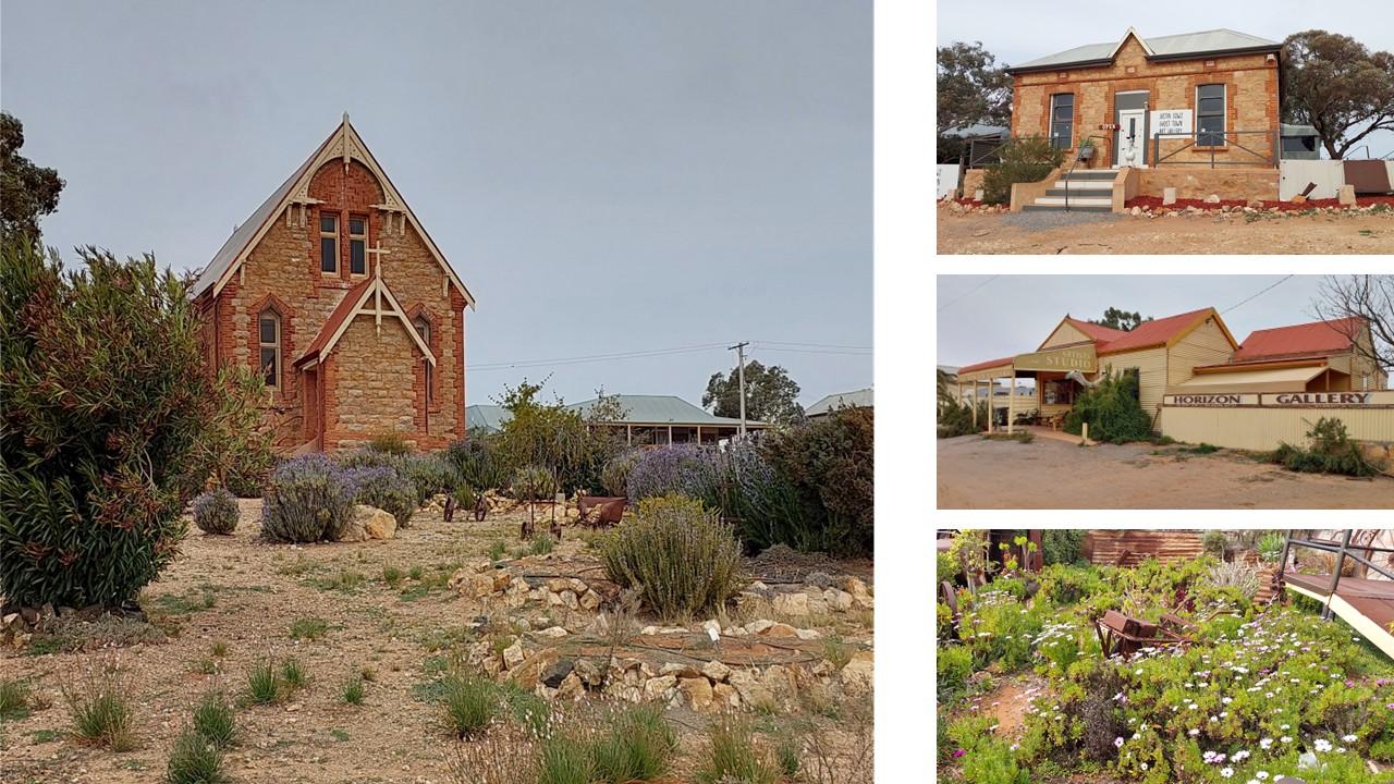 Well, we woke to a beautiful sun filled morning with birdies tweeting. We’re away earlier than anticipated on empty roads through green fields and through Wilmington before heading into Orroroo. The obligatory touristy photos before locating a lovely little café called Two Farmers Daughters. Karl had breaky & coffee, I had a darn good hot chocolate. I then took myself off for a little walk of the main street.