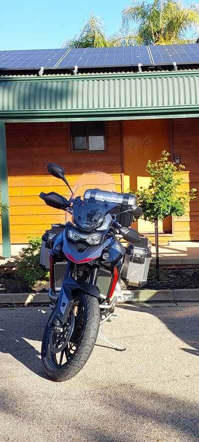 10km heading to Numerkah and the TPMS warning light lit up half the instrument cluster with WARNING Low rear Pressure. I hit the panic button, I’ve never had TPMS before so thought best to pull into the closest servo and check. My tyre gauge gave me a good reading but rang Karl to see what I should do. He talked my through checking the tyre pressure on the TFT and it read the same as my gauge, so no need for alarm. Early lunch and comfort stop into a beautiful windy afternoon.