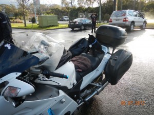 Kimmie’s been frantically trying to get things ready for the BDR to Alice that she’s taking me on. My seating arrangement has been modified now that Karl has installed the panniers (bless him for his hard work) and I now have a nice comfy place on the pillion seat…WOOF!! So this morning we headed off …